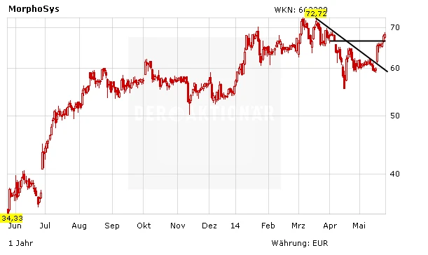 Auch DER AKTIONÄR ist weiterhin sehr optimistisch, was die Entwicklung der Morphosys-Aktie angeht. Zuletzt ist dem Wert der Sprung über den seit März ausgebildeten Abwärtstrend gelungen. Zudem wurde das Gap, das Anfang April aufgerissen wurde, erfolgreich geschlossen. Nun fehlen nur noch knapp fünf Euro bis zu dem erst im März markierten Mehrjahreshoch. Immer wieder gelingt es dem Unternehmen, mit positiven Meldungen aufzuwarten. Für den jüngsten Kursanstieg sorgte die Nachricht, dass Morphosys von der US-Gesundheitsbehörde FDA und von der Europäischen Arzneimittel-Agentur EMA für das Projekt MOR208 den Orphan-Drug-Status verliehen bekommen hat.