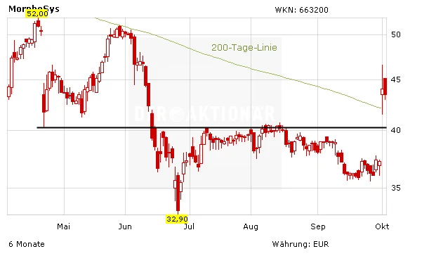 Die Investmentbank Oddo Seydler hat das Kursziel für Morphosys von 60 auf 66 Euro angehoben. Die Einstufung bleibt "Buy". Die ersten auf Lizenzgebühren basierenden Erlöse dürften 2018 generiert werden, schrieb Analyst Igor Kim in einer Studie vom Mittwoch. DER AKTIONÄR schließt sich den optimistischen Einschätzungen an. Die aktuelle Korrektur können Anleger zum Einstieg nutzen.