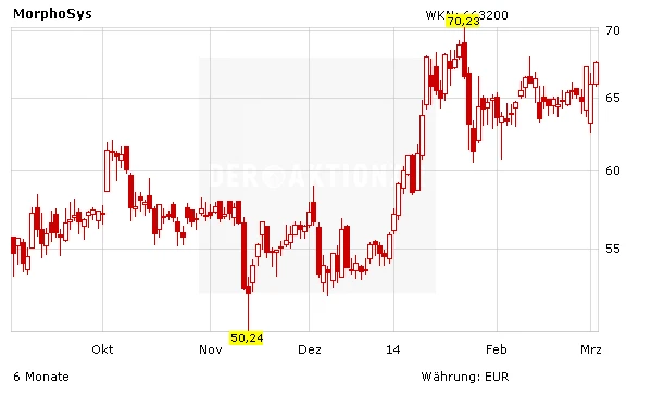 Zuletzt haben sich auch mehrere Analysten zu Wort gemeldet. Die Investmentbank Close Brothers Seydler hat das Kursziel für Morphosys nach den Zahlen von 62 auf 70 Euro angehoben und die Einstufung auf "Buy" belassen. Der Ausblick des Biotechunternehmens auf das operative Ergebnis (Ebit) in diesem Jahr habe zwar unter seinen Erwartungen gelegen, er werte dies aber nicht als schlechtes Signal, schrieb Analyst Igor Kim in einer Studie vom Montag. Verantwortlich für den Ausblick seien letztendlich überraschend hohe Ausgaben für Forschung und Entwicklung, welche jedoch gerechtfertigt seien.