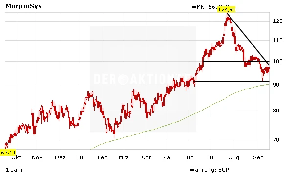 Der positive Newsflow in den letzten Wochen haben der Morphosys-Aktie nicht die nötigen Impulse verliehen, um die psychologisch wichtige Marke von 100,00 Euro zurückzuerobern. DER AKTIONÄR gibt sich jedoch optimistisch, dass der TecDAX-Titel in einem positiven Marktumfeld rasch wieder in dreistellige Kursregionen vorstoßen kann. Mutige Anleger greifen daher bei Morphosys zu, zur Absicherung dient ein Stopp bei 83,00 Euro.