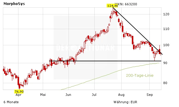 Trotz des positiven Newsflows konnte die Morphosys-Aktie nicht zurück in dreistellige Kursregionen vorstoßen. Langfristig bleibt DER AKTIONÄR für MOR208, MOR106 und die anderen spannenden Projekte in der Morphosys-Pipeline optimistisch gestimmt. Mutige Anleger nutzen den Kursrücksetzer zum Einstieg.
