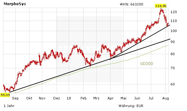 Der Fokus der Anleger von Morphosys liegt derzeit aber insbesondere auf dem am weitesten fortgeschrittenen eigenen Projekt MOR208, bei dem im kommenden Jahr der Zulassungsantrag gestellt werden könnte. Die Aktie von Morphosys hat in diesem Jahr eine beeindruckende Performance gezeigt. Zuletzt hat das Papier nach der monatelangen Rallye aber eine Verschnaufpause eingelegt. Noch nicht investierte Anleger können die derzeitige Korrekturphase zum Einstieg nutzen. In diesem Jahr stehen noch einige interessante News an, die den Kurs weiter beflügeln könnten.