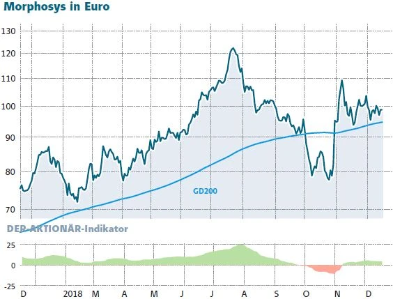 Aus charttechnischer Sicht kämpft das Papier derzeit mit der 100-Euro-Marke. Gelingt hier der nachhaltige Sprung darüber, wartet nur noch eine Hürde im Bereich von 110 Euro auf dem Weg zum Mehrjahreshoch bei 124,90 Euro, das im Juli dieses Jahres markiert wurde. Anleger sollten bei Morphosys in jedem Fall weiter an Bord bleiben.