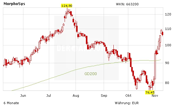 Die Investmentbank Oddo BHF hat die Einstufung für Morphosys nach den Zahlen zum dritten Quartal auf „Buy" mit einem Kursziel von 116 Euro belassen. Als positiv stellte Analyst Harald Eggeling heraus, dass das Biotechnologie-Unternehmen seine Umsatzprognose an das obere Ende der Spanne angehoben hat.