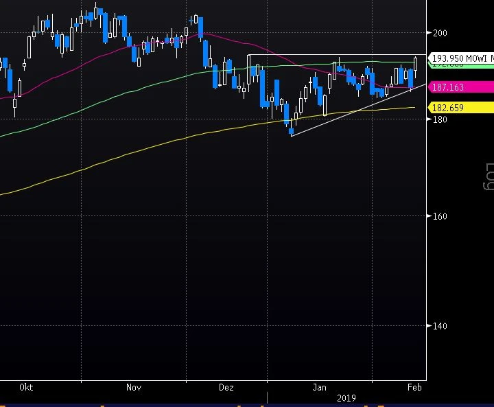 Im heutigen Handel können die Mowi-Titel dank der soliden Zahlen um knapp drei Prozent zulegen. Nun steht die Aktie kurz vor dem Sprung über den Widerstandsbereich zwischen 194 und 195 Kronen. Gelingt dies, so wäre anschließend der Weg bis zum Mehrjahres-Hoch bei 207,50 Kronen frei. Sollte auch dieses Hindernis genommen werden, müsste man in der Charthistorie schon sehr weit zurückgehen, um wieder ernsthafte Hürden zu finden.