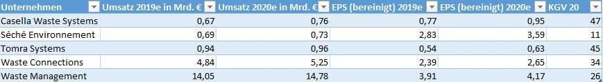 Im Peer-Group-Vergleich zeigt sich: Bis auf Séché Environnement (günstig aufgrund erhöhter Verschuldung) sind alle Müll-Aktien wahrlich keine Schnäppchen. Doch die Unternehmen glänzen mit stetigem Wachstum. Der Aktie von Casella Waste Systems spielt zudem eine latente Übernahmefantasie seit Jahren in die Karten.
