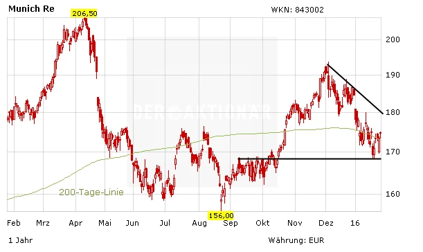 DER AKTIONÄR hält sogar noch höhere Kurse für möglich und hat ein Kursziel von 215 Euro. Allerdings sollten Anleger vor einem Einstieg den Bruch des Abwärtstrends abwarten. Dieser sollte bei einem weiter freundlichen Gesamtmarkt in Kürze erfolgen. Der Stopp sollte bei 157,50 Euro platziert werden.
