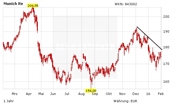 Seit 1969 hat die Munich Re die Dividende nicht mehr gesenkt. Mit einer Dividendenrendite von derzeit 4,7 Prozent und satten Kapitalreserven bleibt die Aktie ein Basisinvestment für Dividendenjäger. Nach den Zahlen hat sich die Stimmung auch wieder aufgehellt. Der Stoppkurs liegt bei 157,50 Euro.