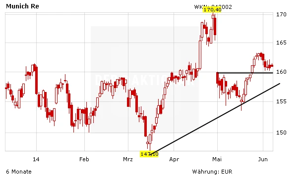 Die Unruhen sorgen im Vorfeld zwar für Sorgen und Bedenken. Die Wahrscheinlichkeit, dass die WM komplett ausfällt ist allerdings gering. Die Aktie der Munich Re zeigt sich davon zudem unbeeindruckt. Der Wert ist für konservative Anleger ein Basisinvestment. Aktionäre bleiben dabei und sichern ihre Position mit einem Stopp bei 135 Euro ab. Das Kursziel lautet weiterhin 190 Euro.