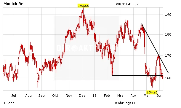 Aus charttechnischer Sicht heißt es derzeit: Vorsicht! Die Aktie verliert am Mittwoch 1,3 Prozent und nähert sich dem Tief bei 154,65 Euro. Von Relativer Stärke derzeit keine Spur. Fällt diese Marke, könnte es schnell weiter in Richtung 147 Euro gehen.