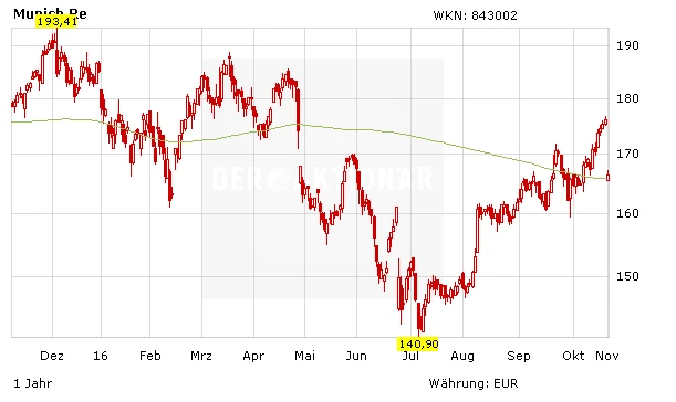 Mitten im Trubel um die US-Wahl hat die Munich Re am Mittwochmorgen ihre Zwischenbilanz für das dritte Quartal veröffentlicht. Trotz deutlichem Gewinnplus und einer Prognose-Erhöhung muss die Aktie dem Trump-Schock Tribut zollen.
