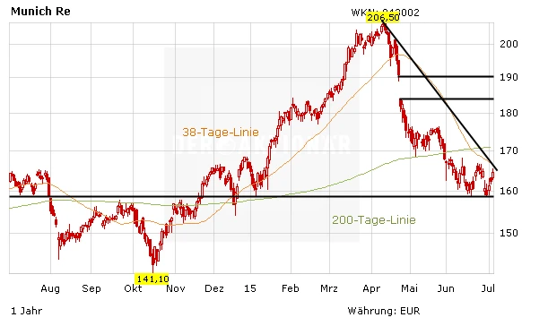 Seit dem 13-Jahreshoch bei 206,50 Euro hat die Munich Re-Aktie kräftig korrigiert. Der DAX-Titel hat um mehr als 20 Prozent nachgegeben. Dass das Papier wieder ein neues Hoch markieren wird, ist sich zumindest ein Analyst sicher.