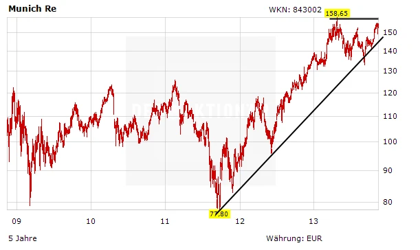 DER AKTIONÄR ist klar bullish für die Munich Re. Die Aktie ist auf dem aktuellen Niveau zu günstig bewertet. Das Kursziel lautet 200 Euro, der Stopp sollte bei 124 Euro gesetzt werden.