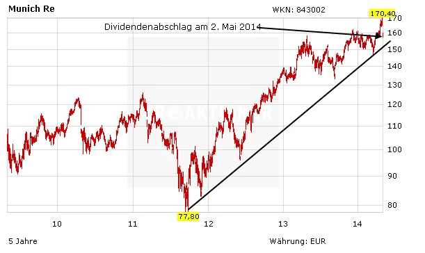 Zu den Skeptikern zählt Julia Siekmann von der NordLB. Sie hat die Einstufung für die Munich Re nach der Hauptversammlung auf „Halten" mit einem Kursziel von 160 Euro belassen. Die Ankündigung eines Gewinnrückgangs des Rückversicherers im ersten Quartal sei angesichts des gegenwärtig niedrigen Zinsumfelds nicht besonders überraschend gekommen, so Siekmann in ihrer Studie. Die Expertin verwies zudem auf den Druck auf die Prämien im Bereich Naturkatastrophen.