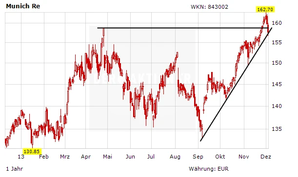 Die Aktie der Munich Re steht wegen Xaver unter besonderer Beobachtung. Zu gut sind die Folgen von Kyrill bekannt, der 2007 in Deutschland tobte und eine Spur der Verwüstung hinterließ. Kyrill kostete die Versicherer rund eine Milliarde Euro.