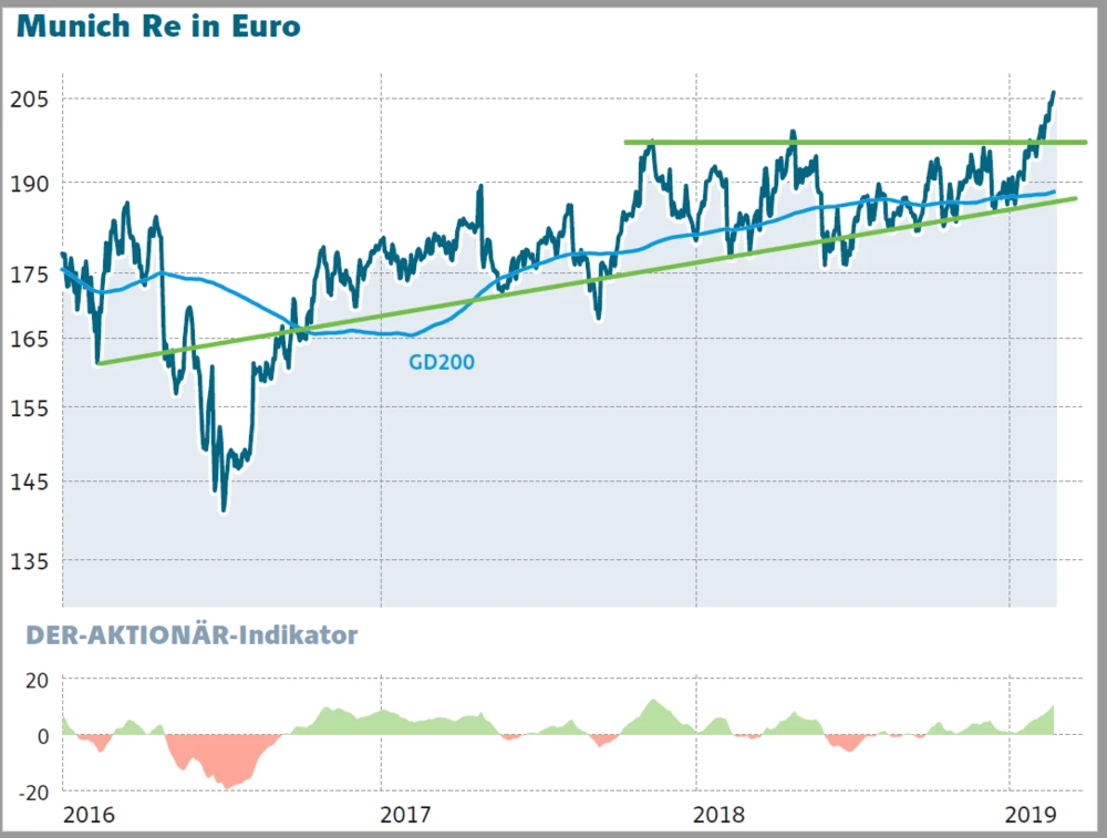 Billig sind die Papiere der Munich Re aber jetzt schon: Bei einem für das nächste Jahr geschätzten Gewinn je Aktie von 20,24 Euro beläuft sich das 2020er Kurs-Gewinn-Verhältnis (KGV) lediglich auf 10,2. Zudem wird das Warten auf das Gelingen der Neuausrichtung mit einer Dividendenrendite von 4,2 Prozent versüßt. Der Titel bietet sich daher insbesondere für defensiv ausgerichtete Anleger an.
