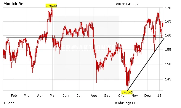 Der Dividendenriese Munich Re hat noch Luft nach oben. Immer mehr Geld wird bei der Suche nach Renditen in den Aktienmarkt fließen und stabile Werte nach oben treiben. DER AKTIONÄR sieht das Kursziel für den DAX-Titel bei 190 Euro. Der Stopp sollte bei 139 Euro platziert werden.