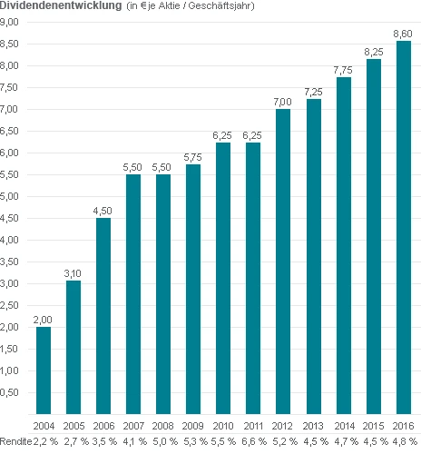 Neben einer unveränderten Dividende von 8,60 Euro, welche beim aktuellen Kurs einer Rendite von circa 4,65 Prozent entspricht, hat Munich Re ein Aktienrückkaufprogramm vor. Bis zur Hauptversammlung 2019 sollen Aktien im Wert von einer Milliarde Euro erworben werden – keine Überraschung, denn Munich Re pflegt jährlich ein solches Programm durchzuführen.