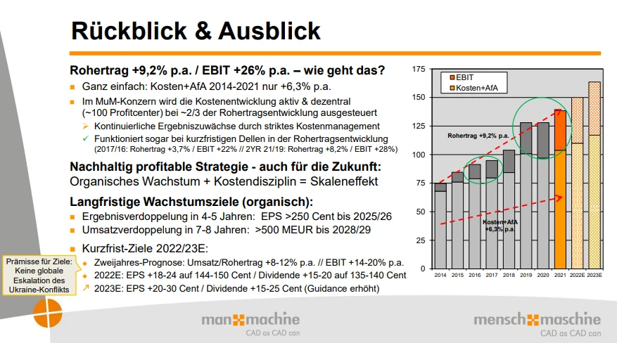 Ein Quartal ist noch ein bisschen kurz für eine solche Aussage, zumal angesichts der angespannten Situation um uns herum. Vorerst freuen wir uns einfach darüber, dass wir auf diese Weise einen guten Puffer für den weiteren Jahresverlauf haben. Zum Halbjahr, wenn wir nach der für MuM typischen Quartalsverteilung ein starkes Q1 und ein saisonal schwächeres Q2 hinter uns haben, dürfte man eine klarere Perspektive auf das Gesamtjahr haben.