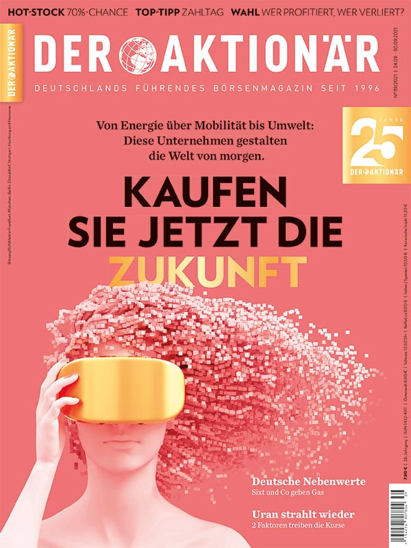 Erfahren Sie alles über die neuen Biotech-Favoriten in der neuen Ausgabe von DER AKTIONÄR (39/21). Außerdem warten auf Sie die Zukunftsaktien. Von Energie über Mobilität bis Umwelt: Diese Unternehmen gestalten die Welt von morgen.
