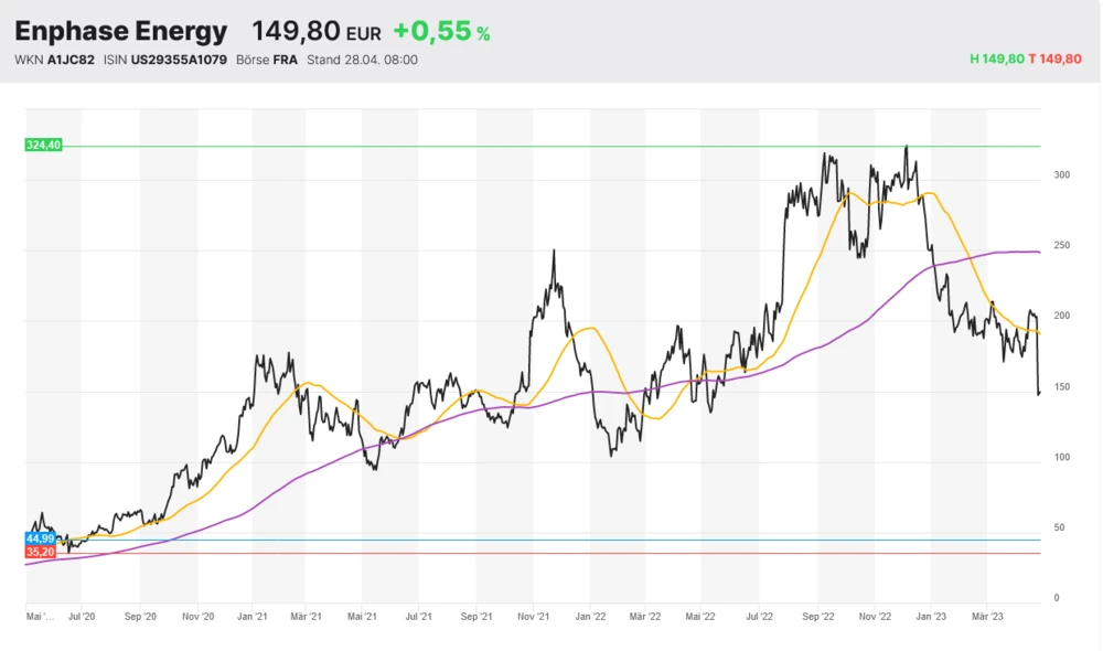 Die Bank of America hat die Aktie von Neutral auf Underperform und das Kursziel von 227 US-Dollar auf 169 US-Dollar gesenkt. Der Analyst Julien Dumoulin-Smith geht davon aus, dass die Nachfrage insbesondere in den USA weiterhin schwächeln wird. Die gestiegenen Zinsen bei finanzierenden Auftraggebern dürfte das Umsatzwachstum bei Enphase weiterhin eher belasten.