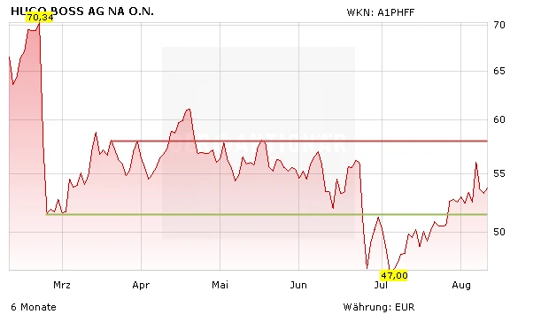Die zuständigen Experten der beiden Häuser sehen weiterhin Chancen für Hugo Boss und sagen: kaufen! Christian Schwenkenbecher von der Privatbank Hauck & Aufhäuser beließ das Kursziel nach Zahlen auf 67 Euro. Jörg Frey vom Analysehaus Warburg Research bleibt ebenfalls bei seiner Kaufempfehlung und senkt lediglich das Kursziel von 82 auf 75 Euro. Beim aktuellen Kurs von 53 Euro immerhin ein Upside-Potenzial von knapp 40 Prozent. Er gehe zwar von rückläufigen Erlösen aus, seines Erachtens sei nun aber ein Ende der abwärts gerichteten Ergebnisüberarbeitungen in Sicht.