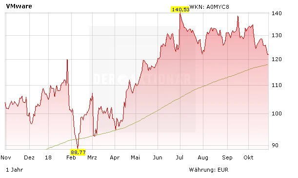 VMware bleibt ein spannender Cloud-Player mit langfristigen Wachstumsaussichten. Im Oktober-Abverkauf konnte sich das Papier stabil über der 200-Tage-Linie halten. Die Spekulation, dass DELL die VMWare-Anteile zurückkaufen könnte, bleibt bestehen und stützt den Kurs. Das IBM-Angebot hat für dieses Szenario die Messlatte jedoch deutlich erhöht. Anleger bleiben im Seitwärtstrend investiert.