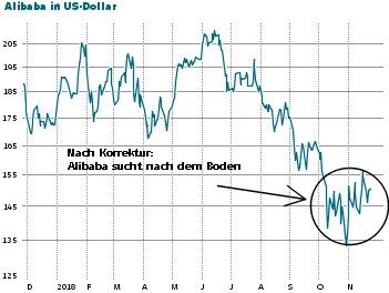 DER AKTIONÄR bleibt langfristig weiter positiv für Alibaba eingestellt, kurzfristig unterliegen die Aktien wegen des Handelsstreits zwischen den USA und China einem höheren Risiko. Charttechnisch arbeitet die Aktie nach den massiven Verlusten der Vormonate an einer Bodenbildung. Risikofreudige Anleger wagen den Long-Einstieg ab 160 Dollar und hoffen auf eine Entspannung im Handelsstreit Ende November auf dem G20-Gipfel.
