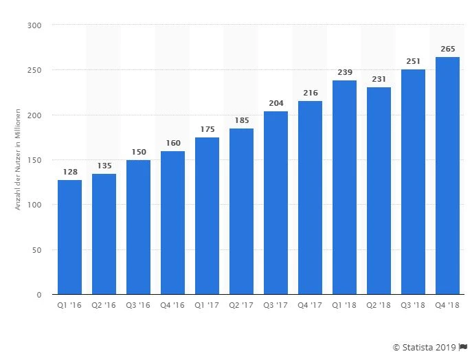 Die werden hören, dass es rund läuft, was das Nutzerwachstum betrifft. Laut Statista stieg die Zahl der montalich aktiven Nutzer (MAU) zuletzt wieder kräftig an und erreichte 265 Millionen.