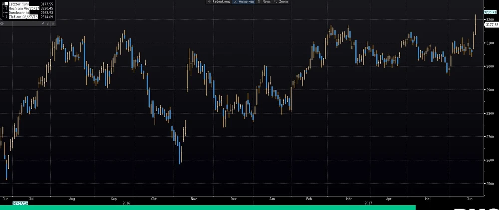 Gelingt der nachhaltige Ausbruch, dürfte der Nasdaq Biotech Index Fahrt aufnehmen und in Richtung von 3.500 Punkten vorstoßen. Fällt diese Marke, könnte es rasch zu einem Angriff auf das Allzeithoch kommen.
