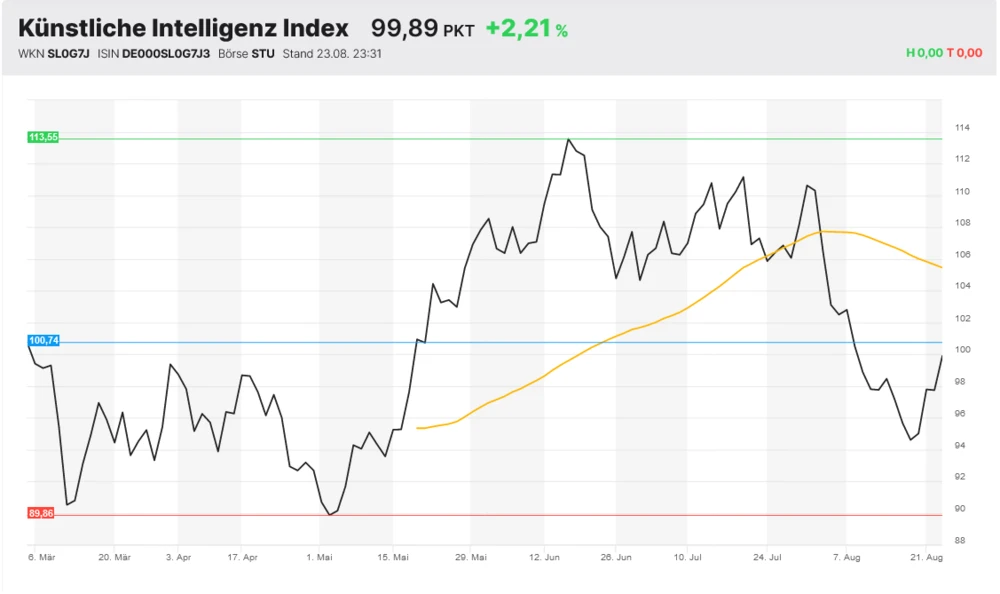 Sowohl Schrödinger als auch Twilio sind Mitglieder im DER AKTIONÄR künstliche Intelligenz Index. Diese und die übrigen dreizehn Aktien haben durchaus das Zeug dazu, die Erfolgsgeschichte von Nivida fortzuschreiben. Mit dem Indexzertifikat WKN DA0ABW haben Anleger die Möglichkeit, an der Entwicklung von 15 KI-Favoriten gleichzeitig zu partizipieren.