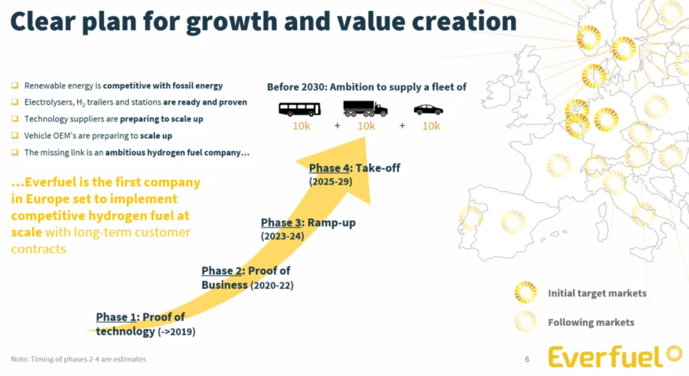 Everfuel fokussiert sich vollständig auf den europäischen Markt. Zunächst fasst das Unternehmen die Benelux-Länder, Deutschland, Dänemark, Schweden und Norwegen ins Auge. Das Marktvolumen des europäischen Fueling-Marktes beziffert Everfuel auf 350 bis 400 Milliarden Euro pro Jahr.