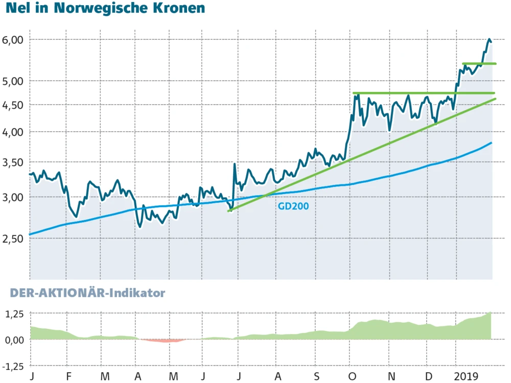 Nel plante rund 84,9 Millionen neue Papiere auszugeben, was etwa 7,6 Prozent des Grundkapitals entspricht. Knapp sieben Stunden später meldet das norwegische Unternehmen bereits Vollzug: Alle Aktien konnten zu einem Kurs von 5,45 Norwegischen Kronen (etwa 0,56 Euro) platziert werden. Das ist ein fairer Preis, angesichts der zuletzt dynamischen Aufwärtsbewegung beim Hot-Stock. Denn der Discount zum gestrigen Schlusskurs in Norwegen beträgt nicht einmal zehn Prozent.