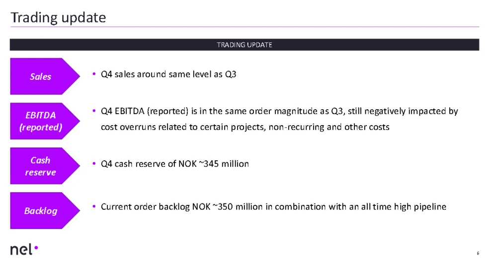 Dass in den letzten drei Monaten des Geschäftsjahres 2018 keine großen fundamentalen Sprünge bei Nel zu erwarten sind, untermauert das Update, welches die Norweger Ende Januar via Präsentation publiziert haben: