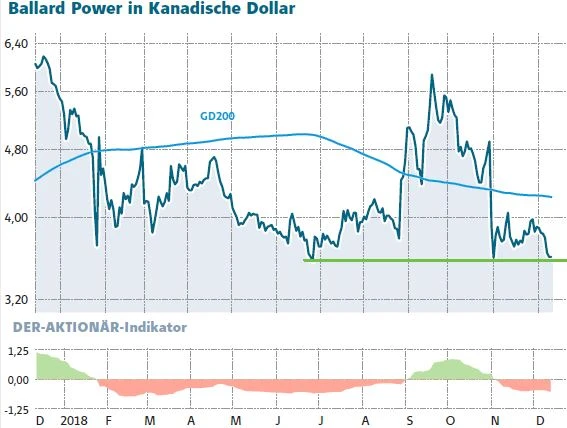 Aber auch Ballard Power sollte man nicht abschreiben, auch wenn die jüngste charttechnische Entwicklung mit Nel nicht mithalten kann. Die Aktie litt unter den zuletzt schwachen Quartalszahlen. Gerade bei Bussen sind die Kanadier aber gut positioniert. Zuletzt gelang dem auf Brennstoffzellensysteme für Flurförderfahrzeuge spezialisierte Unternehmen Infintium ein Deal mit Daimler. Das Unternehmen hat hier den Zuschlag für die Lieferung der Brennstoffzellensysteme für den Einsatz in Gabelstaplern und automatisierten Produktionsfahrzeugen erhalten. Davon profitiert auch der kanadische Brennstoffzellenhersteller Ballard Power, der die Stacks für die Brennstoffzellensystem von Infintium liefert. Bei Ballard Power rät der AKTIONÄR, vor einem Wiedereinstieg den Sprung über die 200-Tage-Linie abzuwarten.