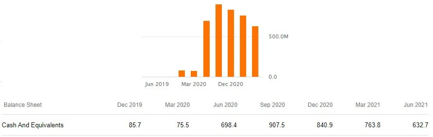 Bestand an liquiden Mitteln in den letzten Quartalen