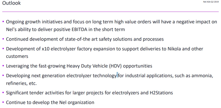 Im Rahmen des Webcasts zu den Zahlen hat Nel-Chef Jon André Løkke bekräftigt, die Technologie- und Kostenführerschaft im Sektor übernehmen zu wollen. Das Unternehmen plant, die Kosten schnellstmöglich zu drücken. Auch für neue Märkte zeigt sich Løkke offen. Der Ausblick: