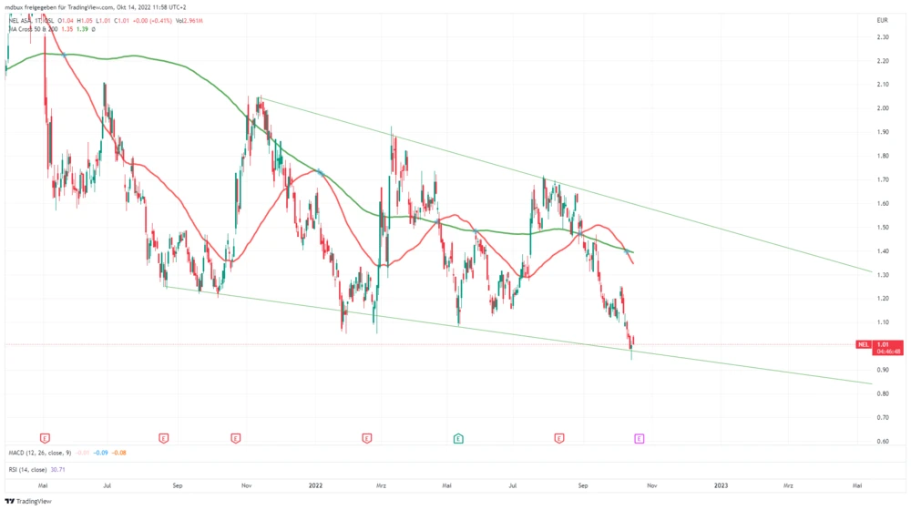 Aus technischer Sicht ist ein tieferes Tief mittelfristig ein bearishes Signal. Es kommt dennoch häufig zu Gegenbewegungen, die bis nahe an das vorangegangene Hoch laufen – Nel ist dafür ein Musterbeispiel. Es besteht somit ein theoretisches Potenzial für eine Gegenbewegung bis 1,50 Euro.