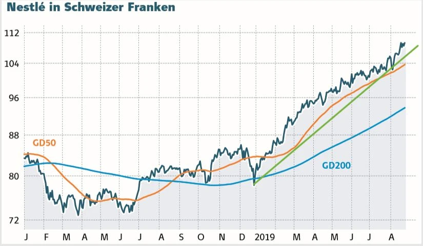 Das Handelsverbot von Schweizer Aktien in der EU macht Nestlé nichts aus: Der Titel marschiert munter weiter und klettert von Hoch zu Hoch. Der Aufwärtstrend ist voll intakt, das Momentum könnte kaum besser sein. Dabeibleiben!
