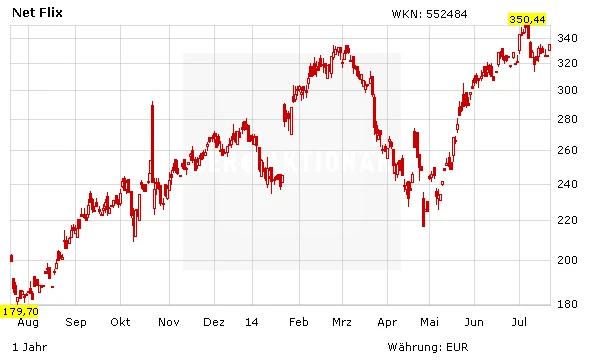 Die Aktie, die seit Ende 2012 wie an der Schnur gezogen nach oben geklettert ist, hatte zu Beginn dieses Jahres eine Verschnaufpause eingelegt. Doch auch diese Korrektur konnte das Papier bereits wieder kompensieren und zuletzt ein neues Rekordhoch markieren. Auch wenn die Netflix-Aktie sicher nicht mehr günstig ist, dürfte sich der Aufwärtstrend dennoch fortsetzen. Das Unernehmen hat noch viel Expansionspotenzial. Dabeibleiben!