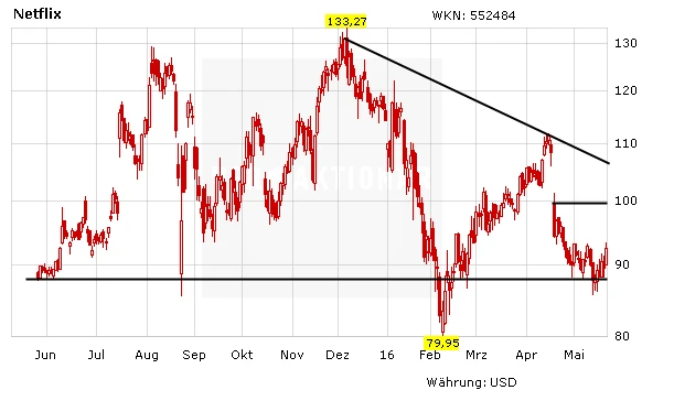 Der Kurssprung sorgte für Durchatmen bei den Investoren – einmal mehr hat sich der Bereich um die 90-Dollar-Marke als tragfähige Unterstützung erwiesen. Obwohl der Abwärtstrend noch intakt ist, können spekulativ orientierte Anleger mit einem engen Stopp bei 86 Dollar (76,58 Euro) einen Trade wagen. Als Ziel gilt zunächst die untere Kante der Kurslücke bei rund 100 Dollar (89,05 Euro).