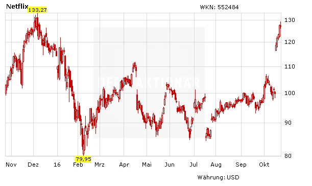Nach der fast 30-prozentigen Rallye in der Vorwoche geht die Verschnaufpause in Ordnung. Das Allzeithoch bei 133,27 Dollar ist weiterhin in Reichweite. Zudem hat der Deal zwischen AT&T und Time Warner auch den Übernahmegerüchten um Netflix neue Nahrung gegeben. Mutige Anleger setzten auf eine Fortsetzung des Aufwärtstrends.