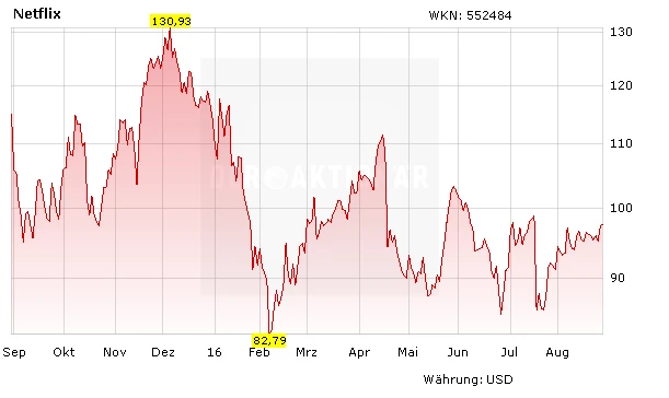 Zusätzlich will Netflix im nächsten Jahr sechs Milliarden Dollar in das stärkste Segment, die Eigenproduktionen, investieren. Deshalb rechnet Schackert bei einem aktuellen Stand von knapp 97 Dollar mit einem Kursziel von 145, im besten Fall sogar von 185 Dollar.