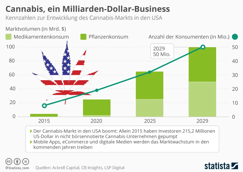 Andererseits: Im kommenden Jahr legalisiert Kalifornien als achter US-Bundesstaat Besitz und Konsum von Marijuana und schon seit längerem avanciert das Geschäft mit legalem Gras in den USA zum Milliardenmarkt – man weiß ja nie…