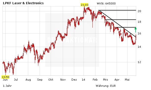 LPKF Laser zählt zu den Technologiewerten, die in den letzten Wochen stark korrigiert haben. So hat die TecDAX-Aktie seit ihrem Hoch bei 21 Euro im Januar 2014 über 30 Prozent an Wert verloren. Doch nun zeichnet sich eine Trendwende ab.