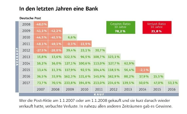 Wir haben acht Aktien herausgefiltert, die in den 20 Jahren eine Top-Performance abgeliefert haben. Egal wann man ge- und verkauft hat: Man hat fast immer Gewinn mit diesen Aktien gemacht.
