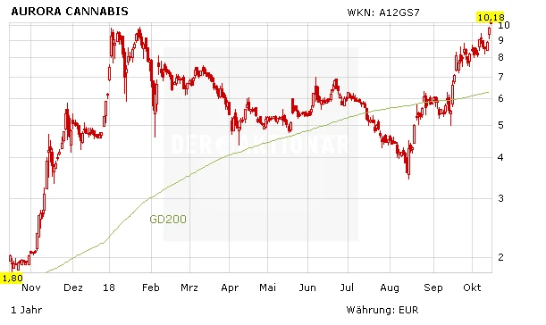 Charttechnisch sehen die Cannabis-Aktien derzeit enorm stark aus. Canopy Growth und Aurora Cannabis befinden sich nur knapp davor, ein neues Allzeithoch zu markieren. DER AKTIONÄR zählt die Werte weiter zu seinen Favoriten und empfiehlt hier die Gewinne weiter laufen zu lassen. Anleger sollten zur Absicherung sukzessive die Stoppkurse nachziehen. Und auch das Chartbild von Cronos hat sich deutlich verbessert. Das Papier nimmt nun wieder Kurs auf das Allzeithoch, das Mitte September bei 19,81 Kanadischen Dollar markiert wurde.