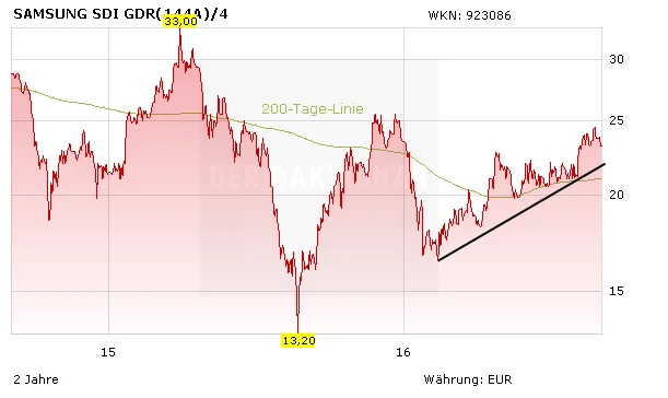 Es ist schön zu sehen, dass europäische Automobilhersteller dem Trend folgen, bevor sie ihn komplett verschlafen. Dies haben nun die großen asiatischen Batteriehersteller bemerkt und mit Samsung und LG Chem ihre Vertreter nach Europa geschickt. Zudem wird spekuliert, dass Samsung ein eigenes E-Auto entwickeln wird. Bei dessen Ausstattung mit Lithium-Zellen können die Koreaner dann von den selbst geschaffenen Synergien profitieren. Analysten coverten die SDI-Aktie überwiegend positiv und empfehlen den Kauf.