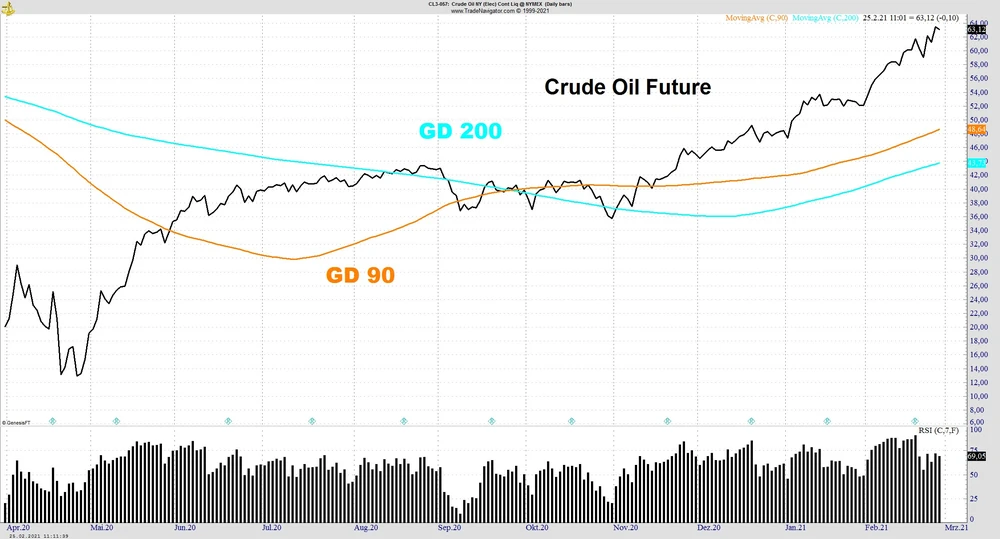 In den darauffolgenden Jahren kletterte der Preis wieder über 100 Dollar und befindet sich seit 2014 in einem Abwärtstrend, der vor kurzem gebrochen werden konnte. Inflationsängste und Lieferengpässe treiben den Preis weiter nach oben.