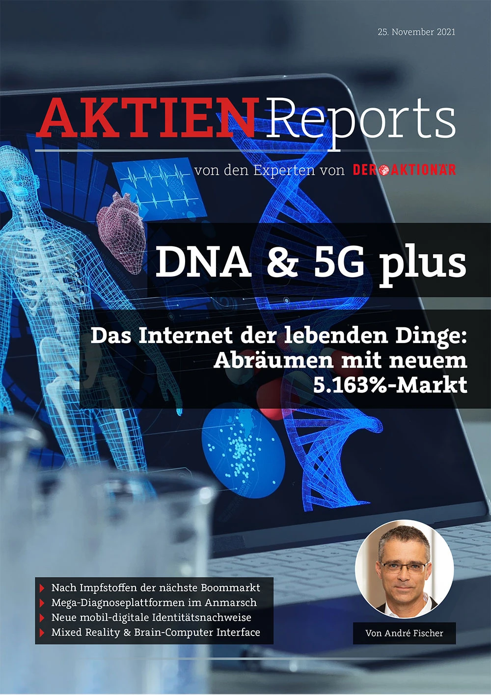 Damit nicht genug: André Fischer erläutert in dem Report, warum die Sektoren Sequenzierung, Genomik und SARS-CoV-2-Datenbanken nur Übergangsbrücken für Mega-Diagnoseplattformen, universell-digitale Identitätsnachweise und das „Internet der lebenden Dinge“ sind. Weitere interessante Details erfahren Sie jetzt im neuen 10-seitigen Aktienreport „DNA & 5G plus“.